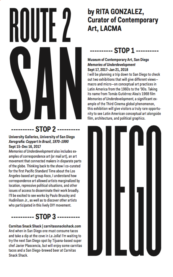 Initiated as part of Pacific Standard Time: LA/LA, ForYourArt asks L.A. insiders like Mayor Eric Garcetti, LACMA curator Rita Gonzalez, and Deputy Director of The Getty Foundation Joan Weinstein to share personal itineraries that hit museum and gallery exhibitions, plus favorite places to eat, shop, or relax nearby.